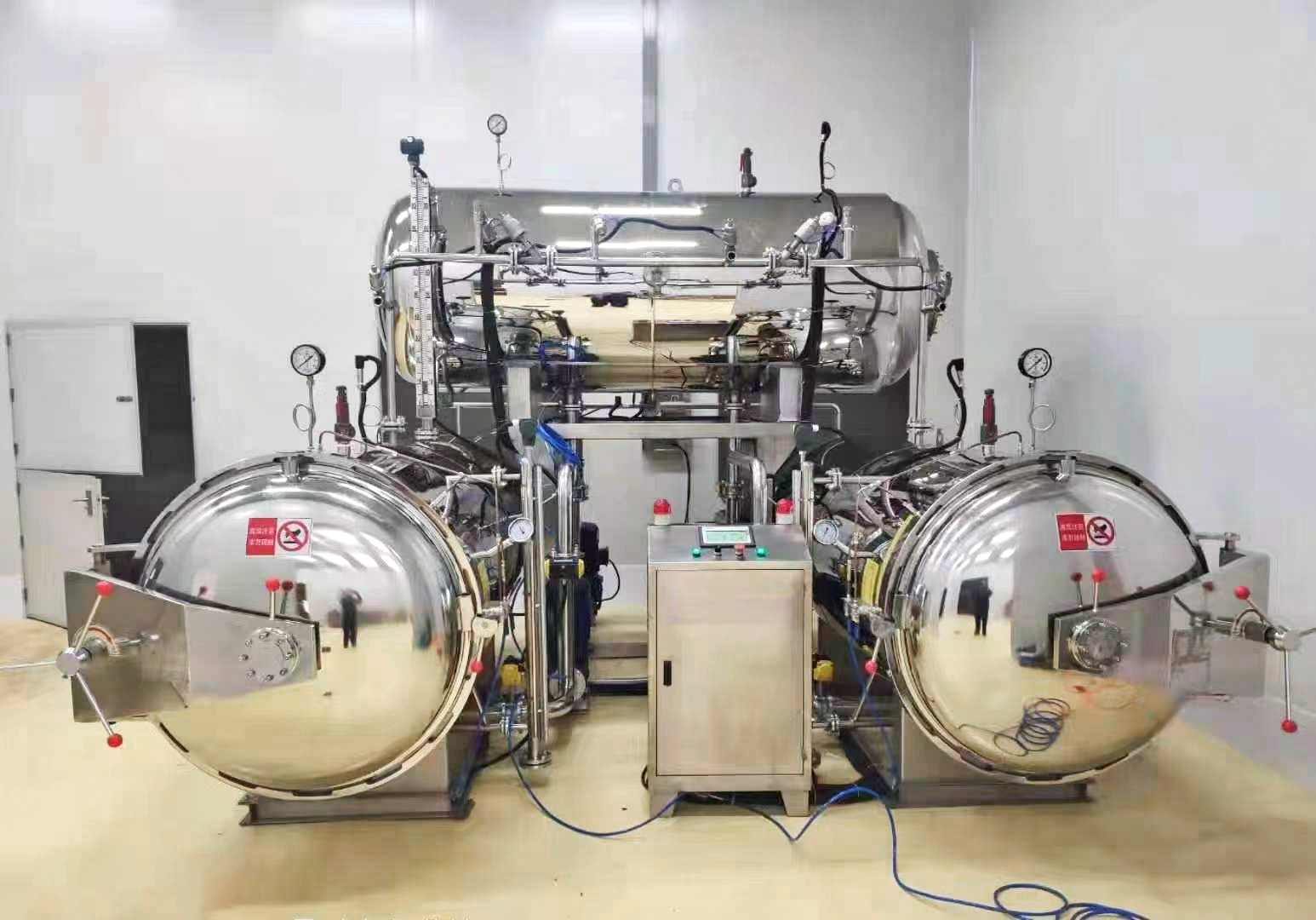 1. Uniform temperature distribution 2. Direct heating and indirect cooling, and prevent the second pollution 3. Automatic control system 4. Pressure control system independently, suitable for gas packaging sterilization 5. Heating and cooling in stages can reduce the temperature difference between the surface and the center of the food in protection of fragile food and glass bottles.
